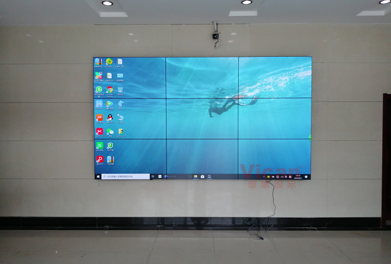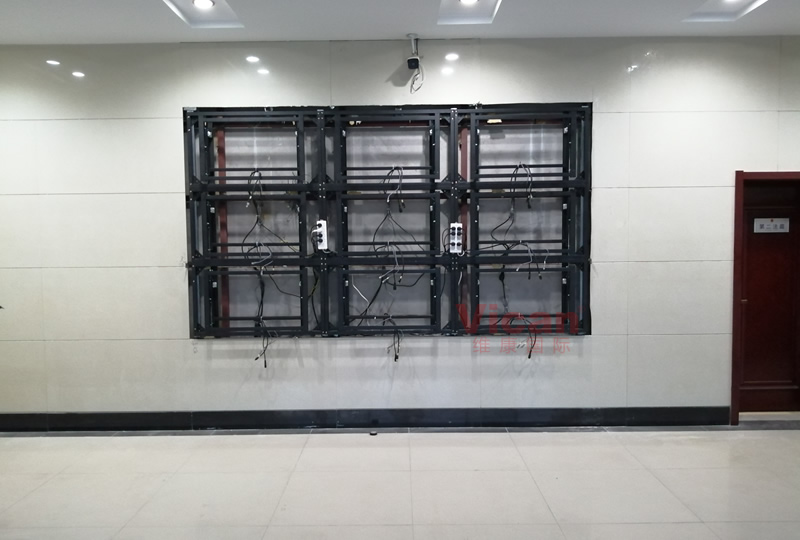 維康國際為永和縣人民法院提供的這套高清顯示大屏,由3行3列49寸拼接屏組成,雙邊拼縫為3.5mm,采用內(nèi)內(nèi)嵌式安裝,與前面成一體,更顯美觀大氣,前維護(hù)支架,后期如若需要維護(hù)更簡單便捷。