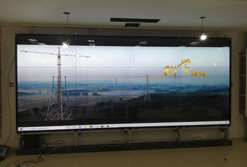 本案例中,薛城國家電網(wǎng)采用是3x4拼接、55寸超窄邊液晶拼接屏,拼縫僅有0.88mm,我們從上圖可以看到,畫面清晰亮麗,大屏有著非常好的一體化顯示效果。