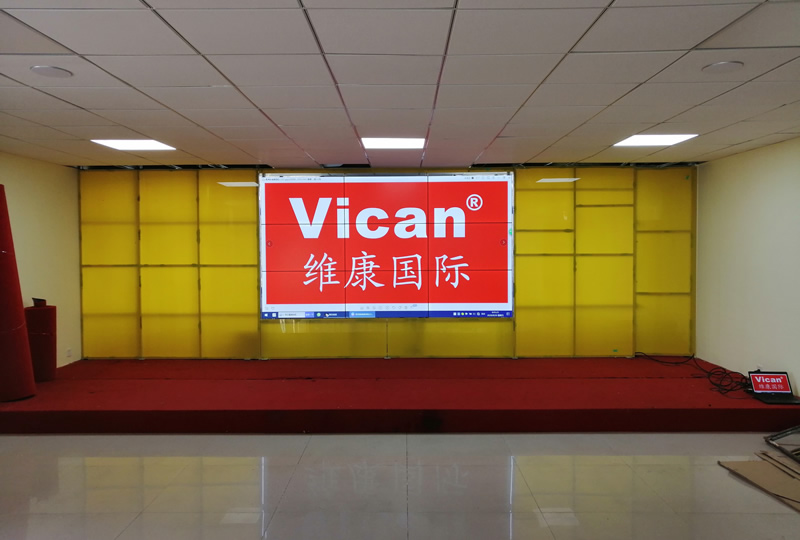 該案例中,維康國際為榮成赤山集團物業(yè)服務(wù)公司提供一套會議室大屏,采用3x3拼接,55寸液晶拼接屏,大屏雙邊拼縫為3.5mm,大屏幕高清顯示,清晰亮麗,如上圖所示。