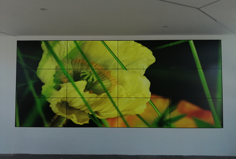 本案例中,維康國(guó)際為日照足球公園提供一套商顯拼接屏,由3行4列、55寸液晶拼接屏組成,超窄邊設(shè)計(jì),雙邊拼縫僅有3.5mm,如上圖所示,我們從大屏可以看出,畫面顯示清晰亮麗,采用內(nèi)嵌式安裝,大屏與墻面連成一體,更顯美觀大氣。