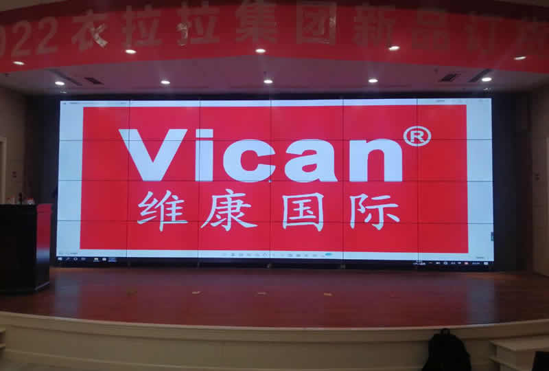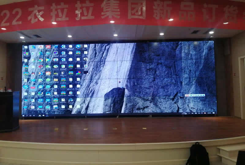 本案例中,維康國際為山東衣拉拉集團(tuán)提供一套會議廳大廳,由4x6拼接、55寸液晶拼接屏組成,雙邊拼縫為3.5mm,大屏幕清晰、超大尺寸,如上圖所示。