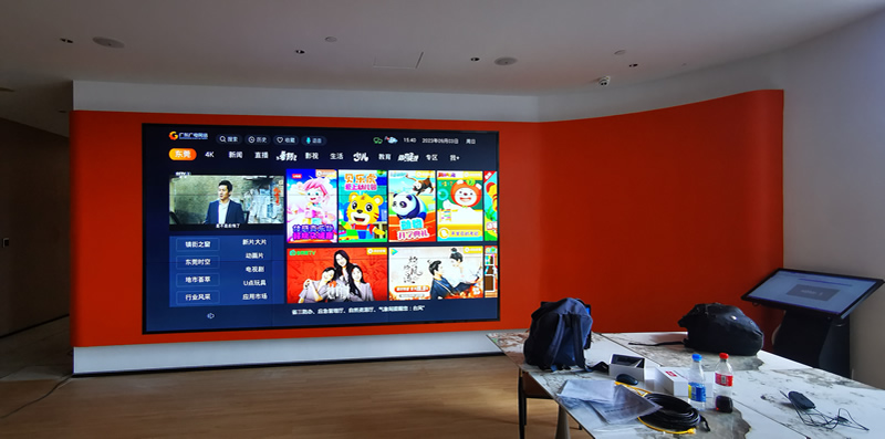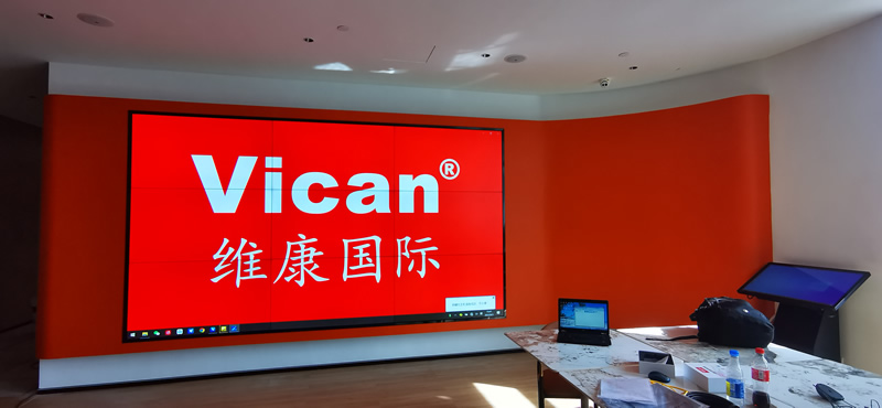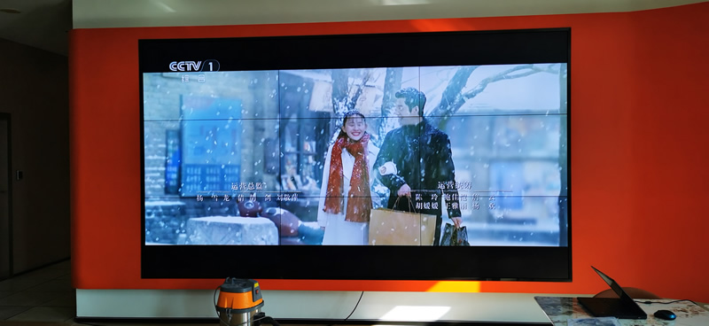 本案例中,維康國(guó)際為東莞市電視臺(tái)辦公室提供一套顯示大屏,采用3*3拼接、55寸液晶拼接屏,0.88mm超窄邊邊框,如上圖所示,屏幕顯示清晰,色彩豐富,一體化顯示效果好。