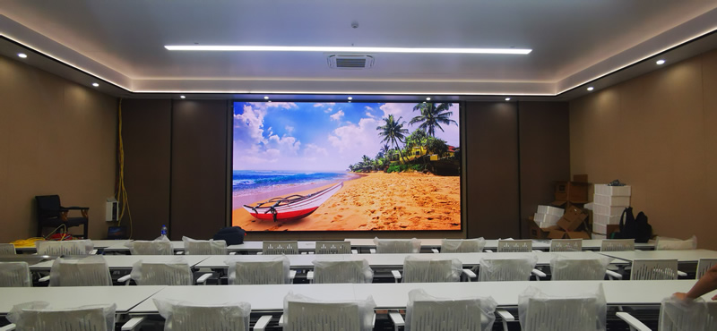 本案例中,維康國際為惠州市某科技公司提供一套會(huì)議LED大屏,采用P1.86COB小間距LED系列,大屏幕約15平方,顯示清晰、色彩豐富,一體化顯示效果很好。