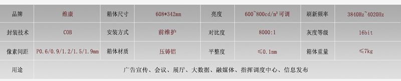 目前,維康國(guó)際目前成熟度高的COB小間距顯示屏已經(jīng)廣泛被應(yīng)用在各種大屏顯示領(lǐng)域,特別是P1.2和P0.9的產(chǎn)品在大數(shù)據(jù)顯示、會(huì)議室、指揮中心等場(chǎng)合有大量使用,并且取得了大量行業(yè)認(rèn)證與COB封裝技術(shù)的專利,入圍政府節(jié)能產(chǎn)品采購(gòu)清單,有著完善的全國(guó)網(wǎng)點(diǎn),可以提供售前、售后等一系列的服務(wù),包括察看現(xiàn)場(chǎng)、設(shè)計(jì)方案、安裝調(diào)度、上門售后等。如果大家想了解更多關(guān)于COB小間距LED顯示屏相關(guān)問(wèn)題,或者面臨著項(xiàng)目需求,請(qǐng)直接聯(lián)系我們。