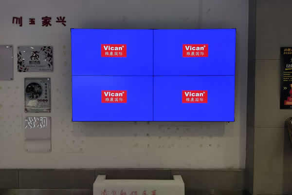 我們常說的110寸液晶拼接屏,是由4塊55寸液晶拼接屏拼接的,通過2X2拼接方式組成,如上圖所示,單屏長寬:1213.4mm x 684.2mm,總體長寬:2430mm x 1370mm。