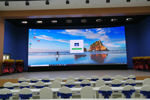 如果選擇LED顯示屏,一般情況下建議選擇一個P2左右的產(chǎn)品,刷新率在3840Hz的,直接安裝在背景墻上就可以,只需要一臺計(jì)算機(jī)與外置拼接處理器來控制就可以實(shí)時顯示計(jì)算機(jī)上的圖像,包括文字信息、數(shù)據(jù)內(nèi)容、視頻等。