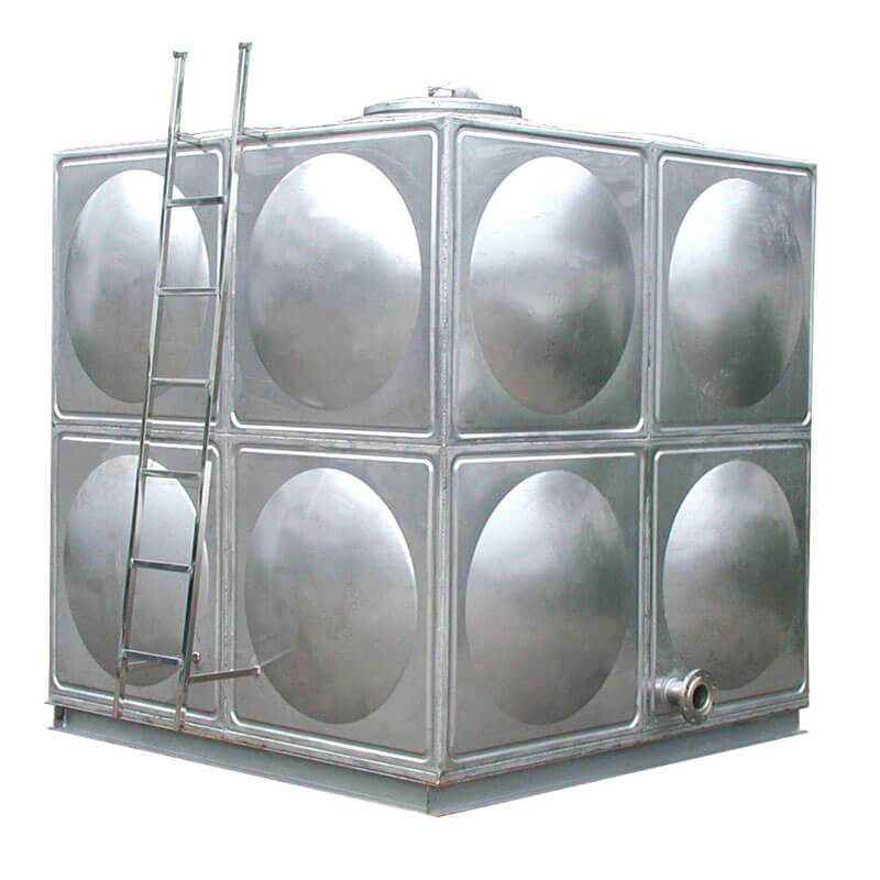 采用單元矩形不銹鋼成型薄板焊接組成,可根據(jù)設(shè)備設(shè)置場(chǎng)所,任意組合成多邊形、階梯型等形態(tài)各異的水箱。