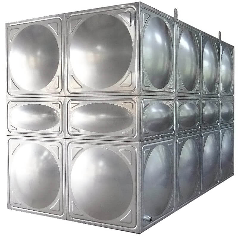 采用單元矩形不銹鋼成型薄板焊接組成,可根據(jù)設(shè)備設(shè)置場(chǎng)所,任意組合成多邊形、階梯型等形態(tài)各異的水箱。